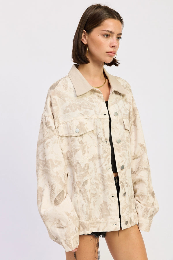 Add a modern twist to a timeless classic with this beige camo print denim jacket. Designed for effortless layering, this piece features a soft neutral camouflage pattern that gives it a subtle yet statement-making edge. Crafted from durable 100% cotton...